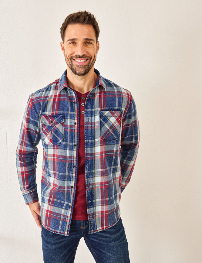 - Mit modischem Karo-Muster und leichter Waschung im Denim-Style