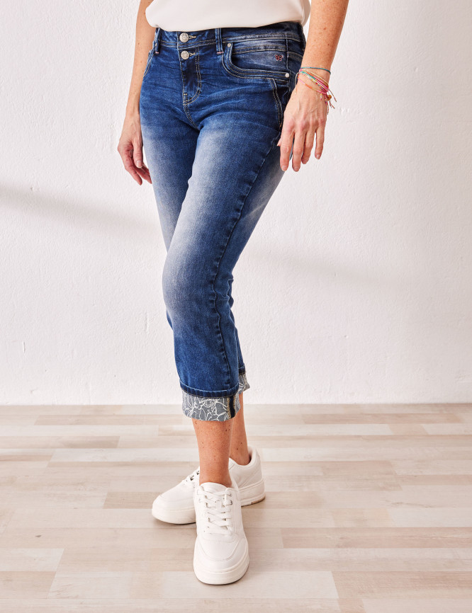 • Capri-Jeans aus Baumwoll-Gewebe mit Stretchfaser