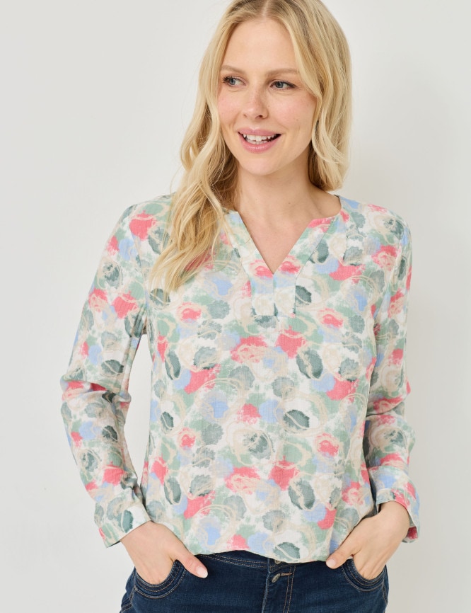 • Ausdrucksstarke Schlupfbluse mit aquarelligem Druckmuster