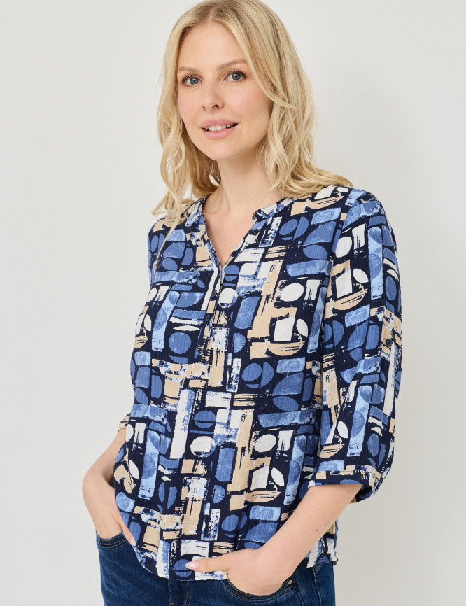 - Modische Schlupfbluse mit ausdrucksstarkem, mehrfarbigem Allover-Print und leichtem Crasheffekt
