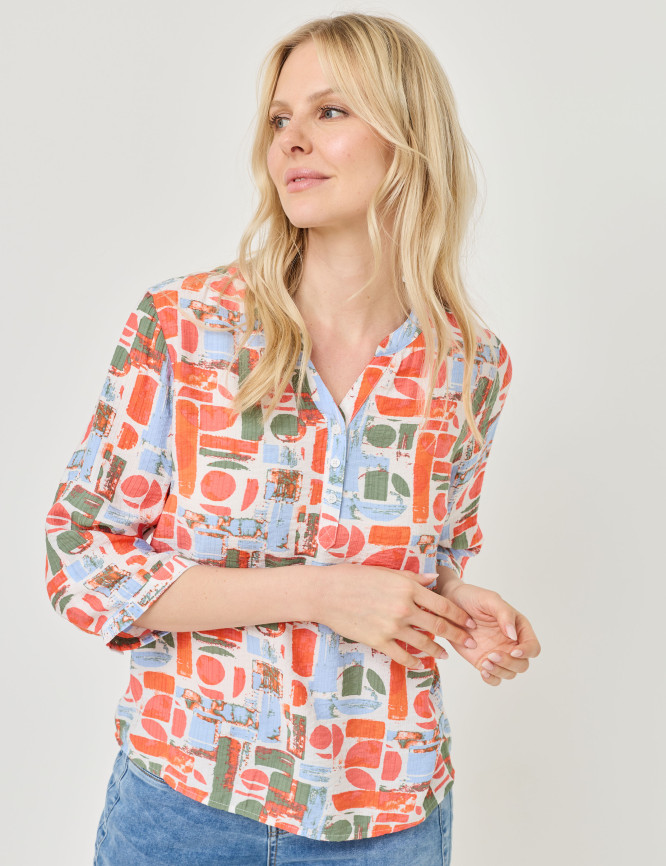 - Modische Schlupfbluse mit ausdrucksstarkem, mehrfarbigem Allover-Print und leichtem Crasheffekt
