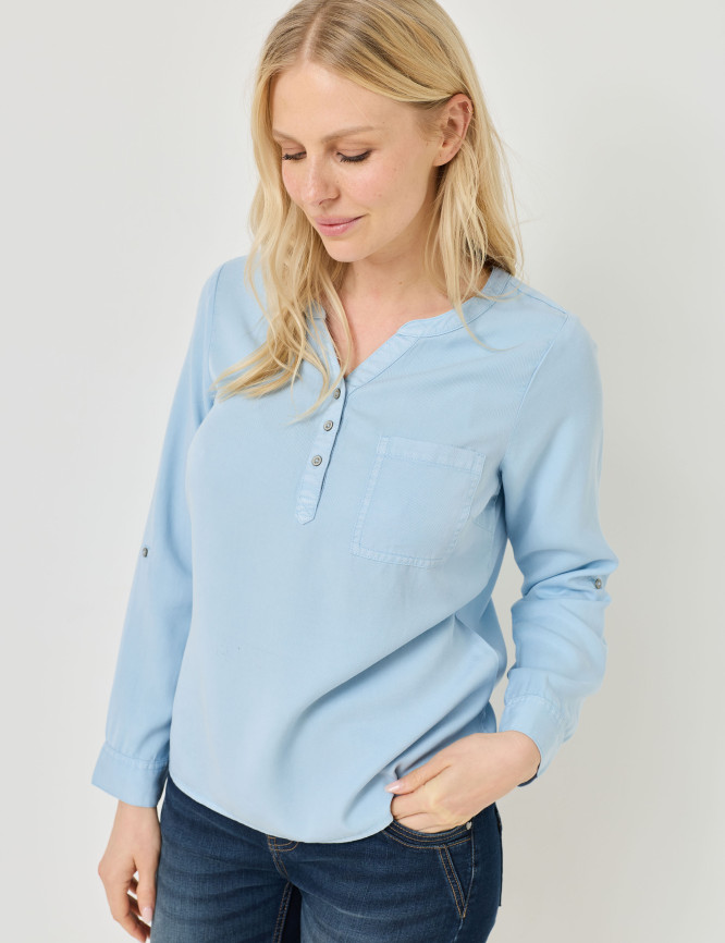 • Schlupf-Bluse mit bequemem Ausschnitt im Henley-Style