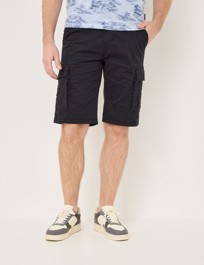 - Seitliche schräge Eingrifftaschen, rückwärtige Pattentaschen und seitliche Cargo-Pockets