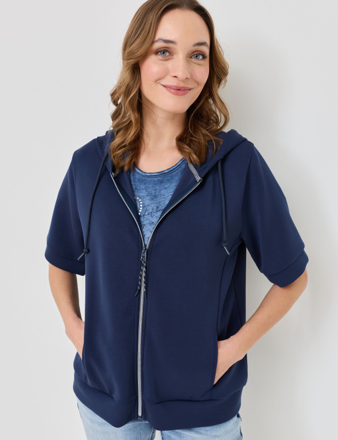 - Kurzärmelige Shirtjacke mit weitenregulierbarer Kapuze