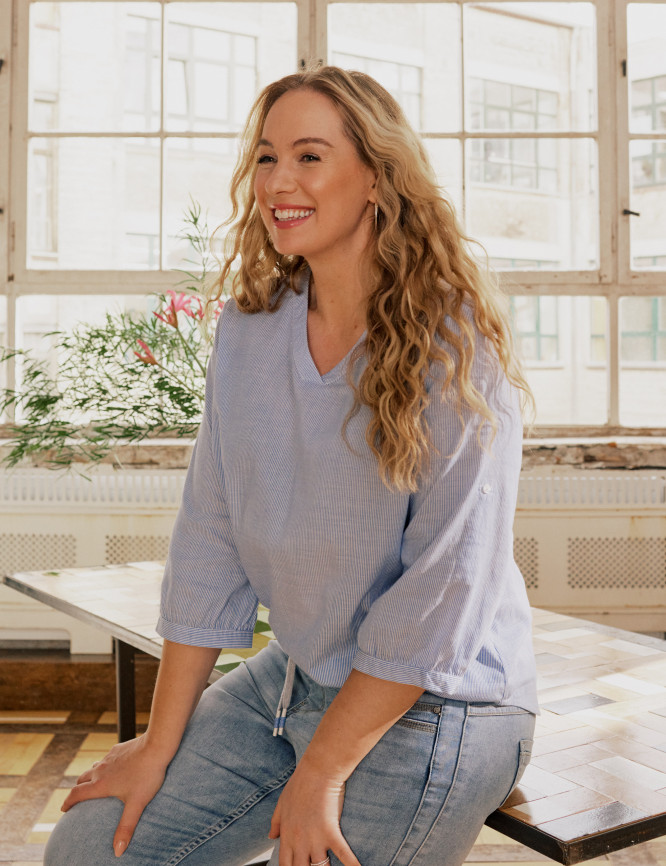 • Schlupfbluse mit luftigem V-Ausschnitt