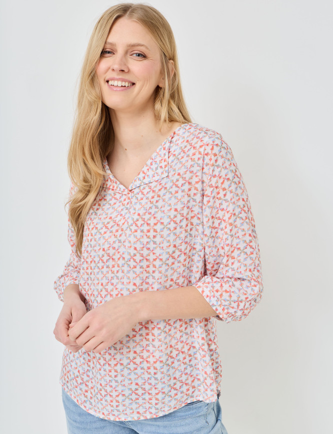 - Modische Schlupfbluse mit bequemem, v-förmigem Ausschnitt und kurzer Leiste