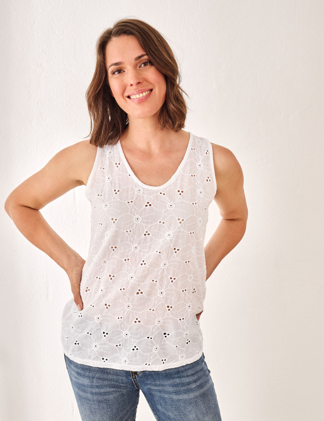 - Bequemer Materialmix aus feinem Lockstickerei-Gewebe vorne und softem Single-Jersey hinten