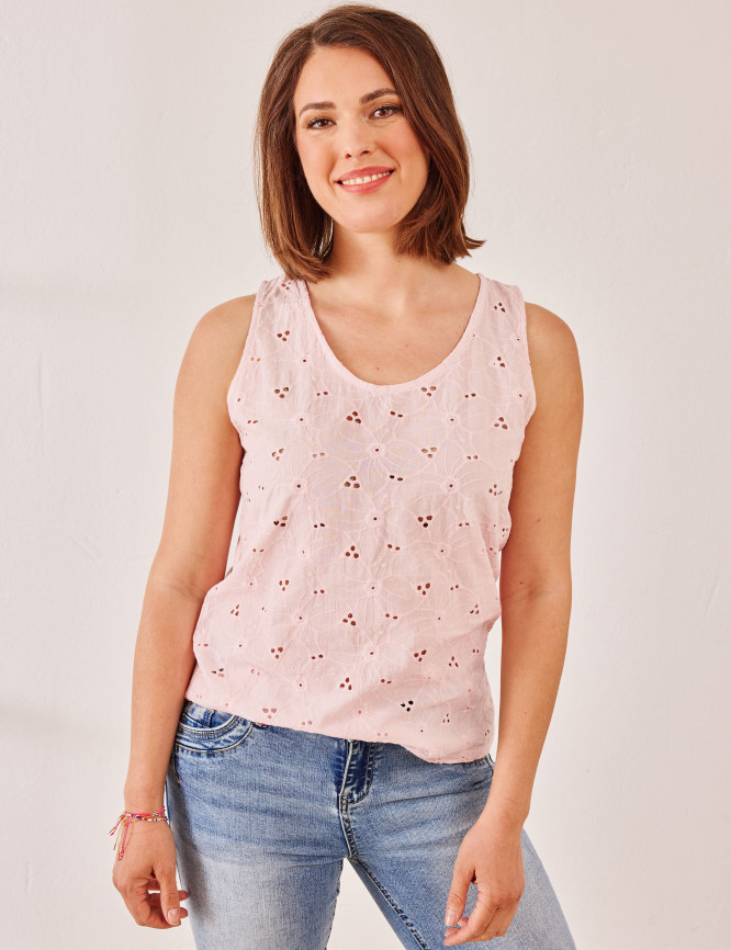 - Bequemer Materialmix aus feinem Lockstickerei-Gewebe vorne und softem Single-Jersey hinten