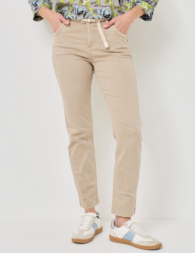 - Bund mit angesagtem schmalem, stufenlos einstellbarem Flechtgürtel
