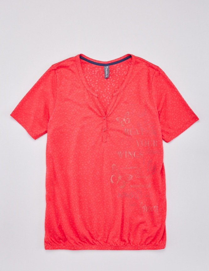 - Bequemer Henley-Ausschnitt und kurze Knopfleiste