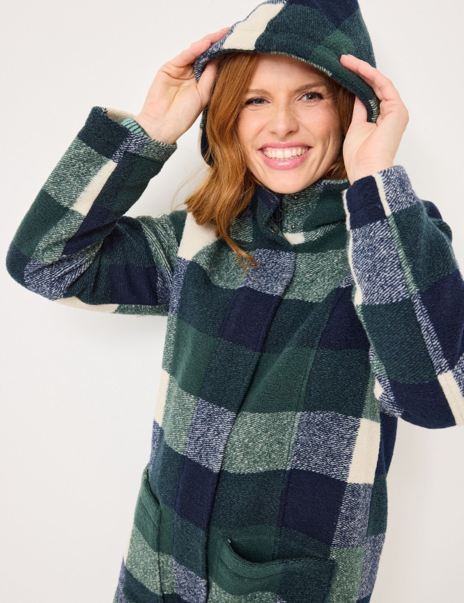 - Karierte Jacke mit angesetzter, leicht gefütterter Kapuze