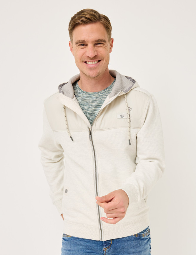 • Langärmelige Sweatjacke mit leicht gefütterter Kapuze und Bindekordeln