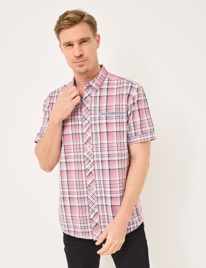 • Lässiges Sommerhemd mit modischem gewebtem Karo