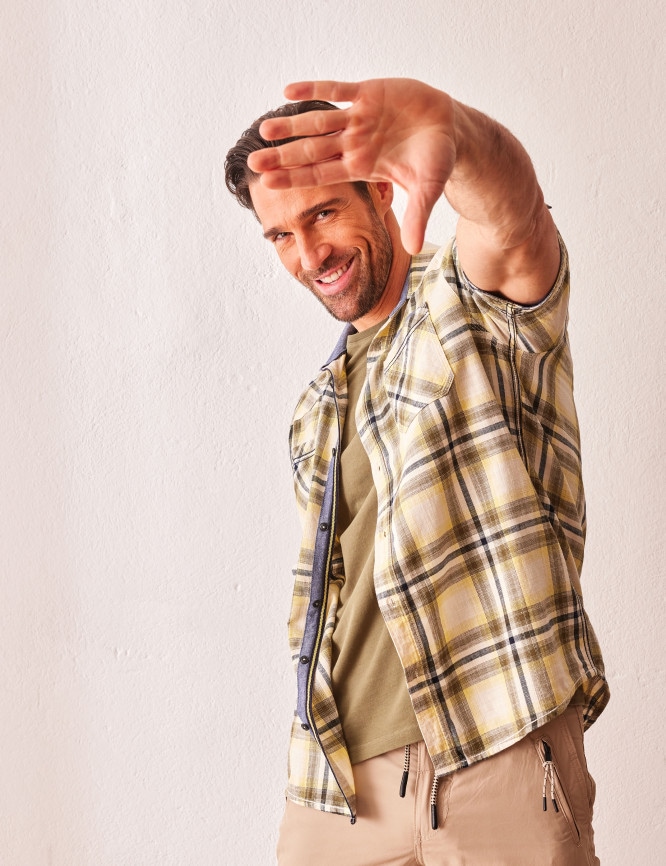 • Modisches Web-Karo in tollen Grüntönen, perfekt zu Denims