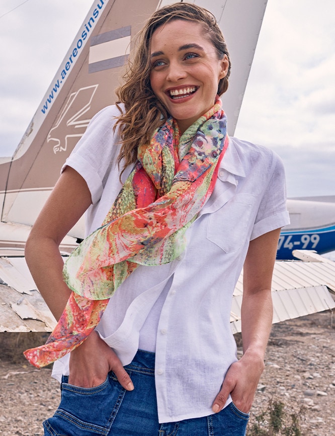 • Aus angenehmem Leinen-Viskose-Mischgewebe in 2-Tone-Optik