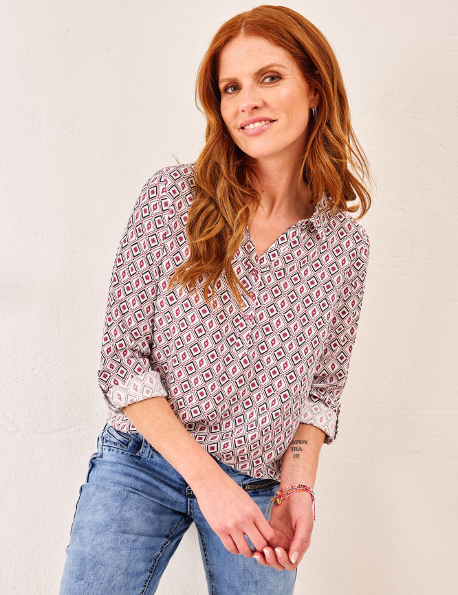 • Schlupfbluse mit Hemdkragen im Henley-Style