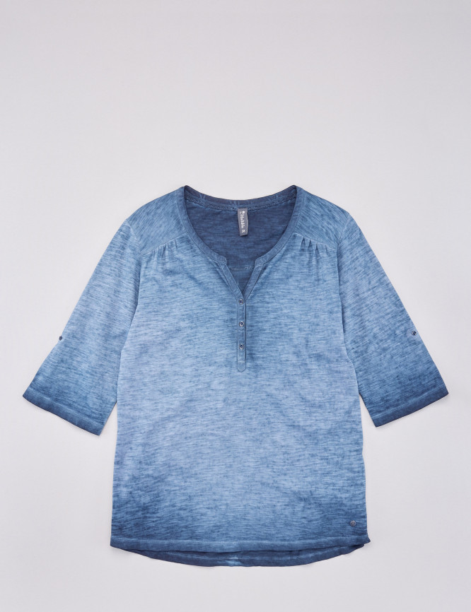 - Feminines Shirt mit Henley-Ausschnitt und kurzer Knopfleiste