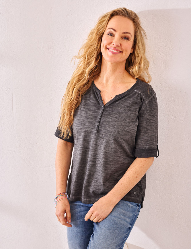 - Feminines Shirt mit Henley-Ausschnitt und kurzer Knopfleiste
