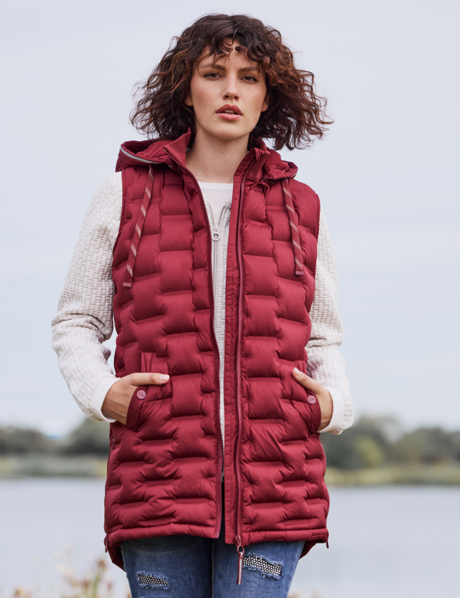 Lange Steppweste m. Kapuze: no down