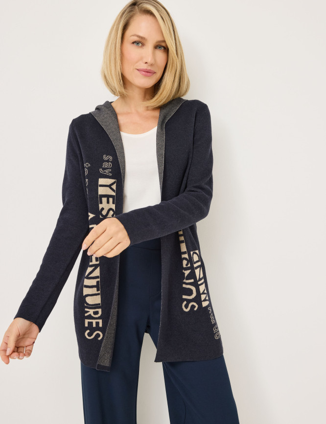 - Kapuzen-Strickjacke mit interessantem Schriftzug vorne und hinten