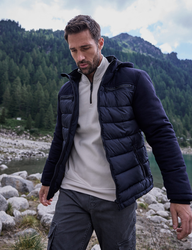 Mit Wolle: Jacke im Materialmix