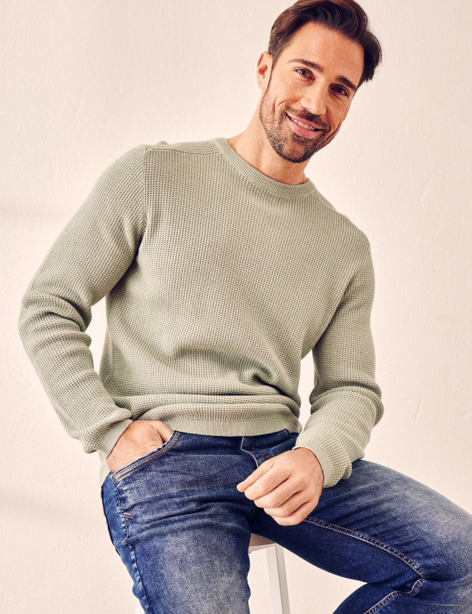 Rundhals-Pullover in Waffeloptik