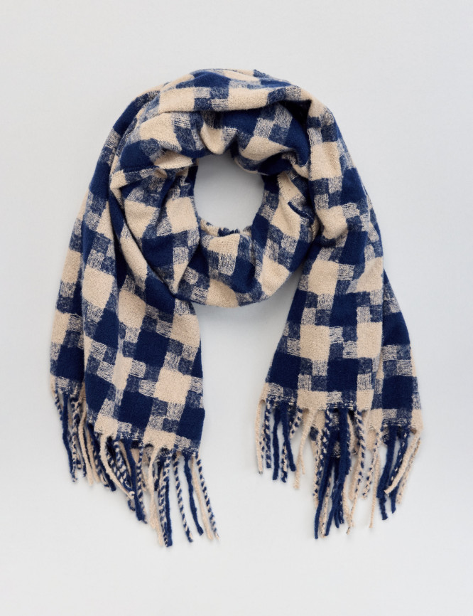 • Schal mit gewebtem, modischem Karo und langen Fransen