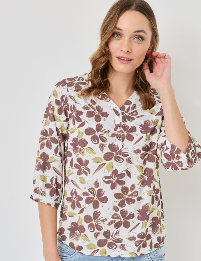 - Allover bedruckte Schlupfbluse mit 3/4-langen Ärmeln