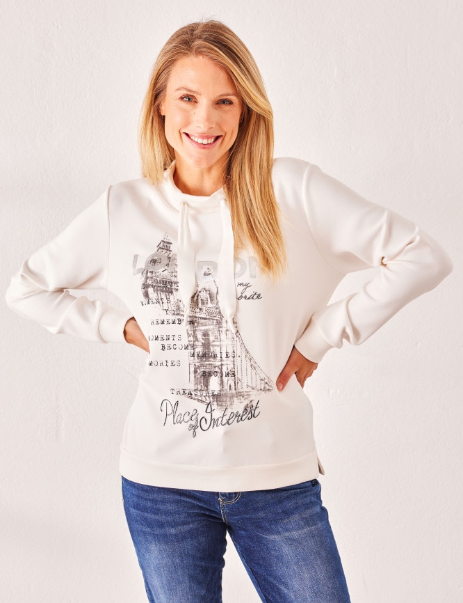 - Modisches Langarm-Shirt mit Stehkragen und Kordel