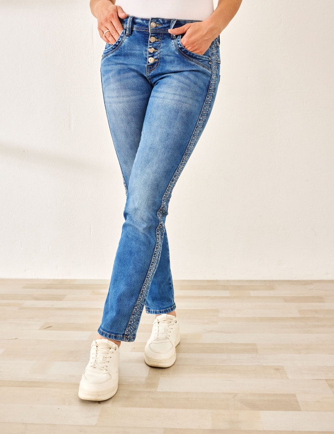 • Das Model ist 178 cm groß und trägt Größe 38 Länge 32