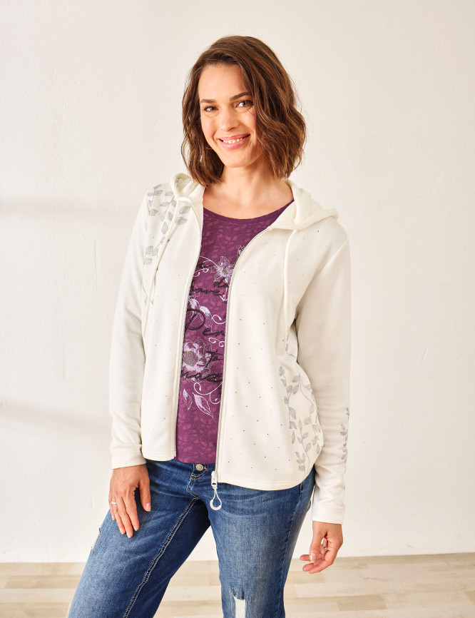 - Feminine Kapuzenjacke mit raffiniertem Glitzerprint und Strasssteinchen