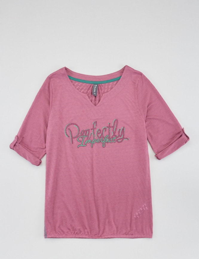 - Mit Wording-print und Glitzerstein-Applikation für einen femininen Look