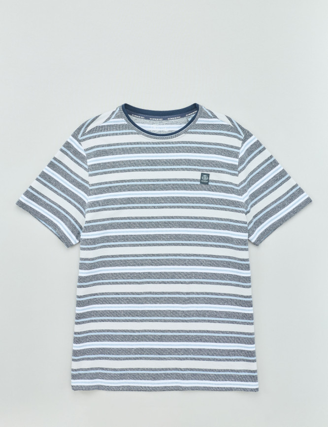 - Runder Ausschnitt mit schmalem Rippbündchen