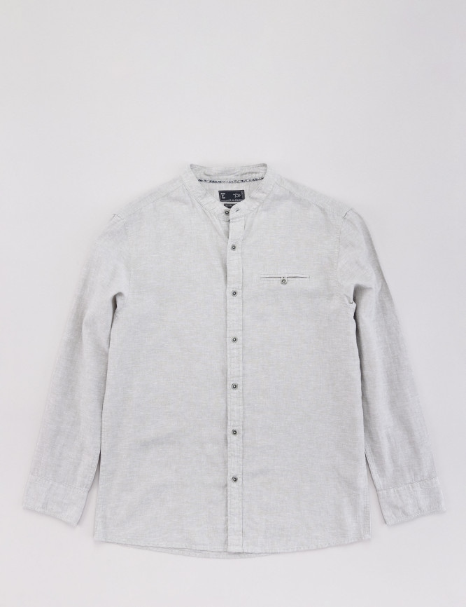 Stehkragen-Hemd aus Leinen-Mix