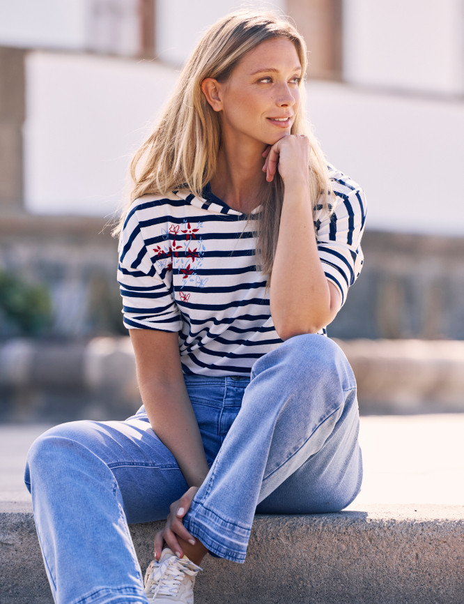 - Bequemer, leicht körperumspielender Schnitt