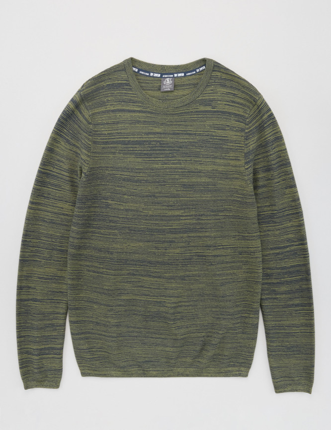 - Feinstrick mit schmaler Streifenstruktur und Melange-Effekt