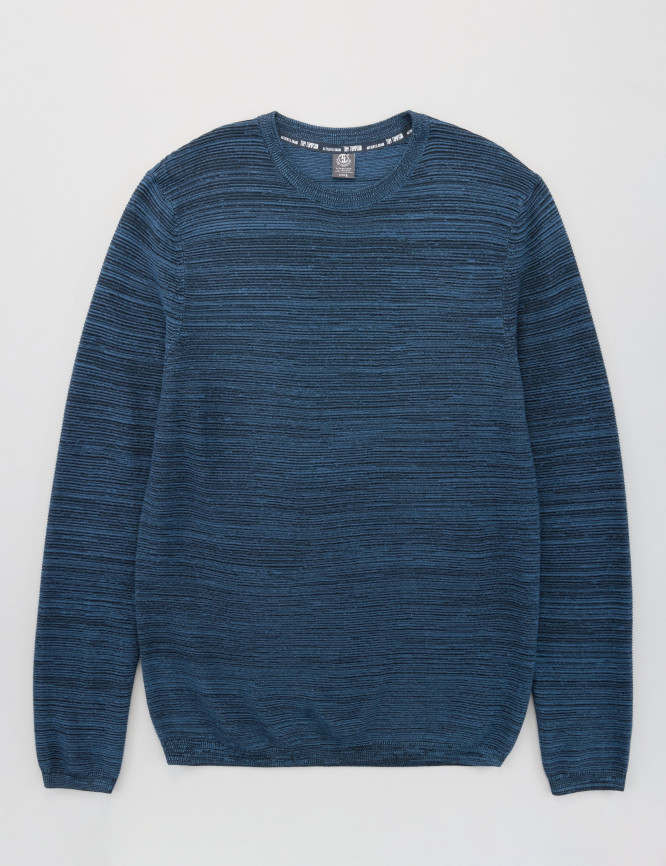 - Feinstrick mit schmaler Streifenstruktur und Melange-Effekt