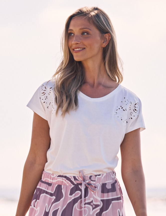 T-Shirt mit süßer Loch-Stickerei