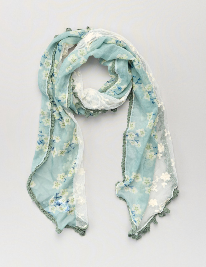 Tuch m. Blumen- und Spitzendetails