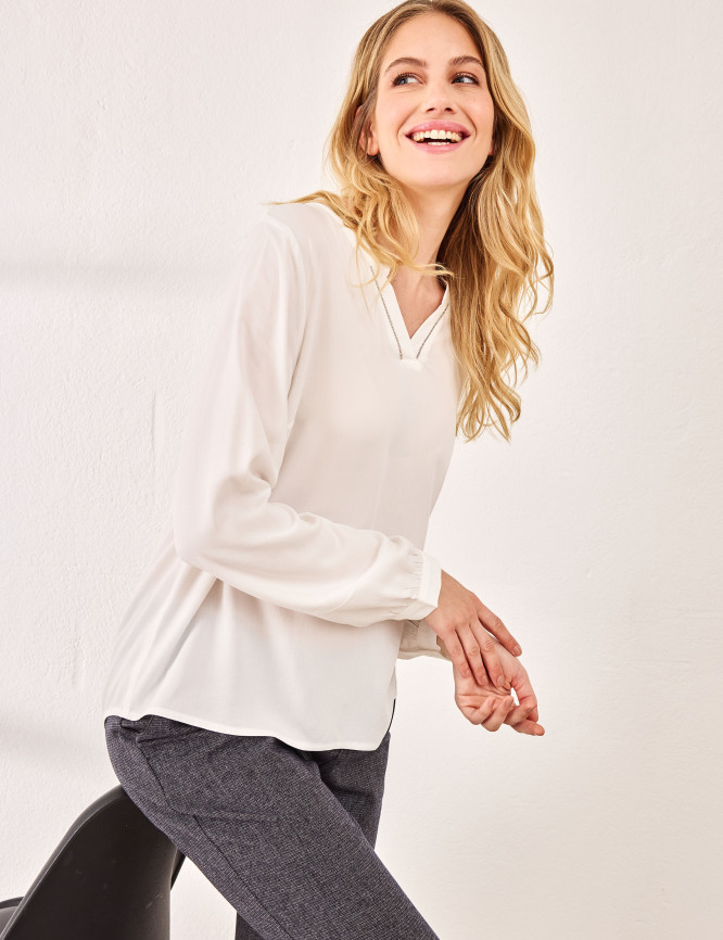 Unifarbige Bluse mit Perlen-Details