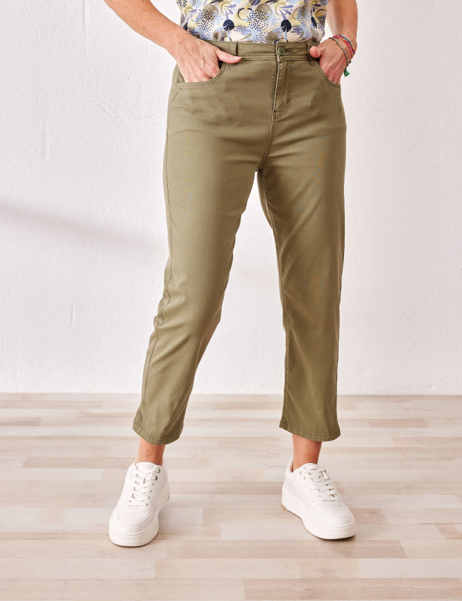 • Capri-Hose aus Baumwoll-Gewebe mit Stretchfaser