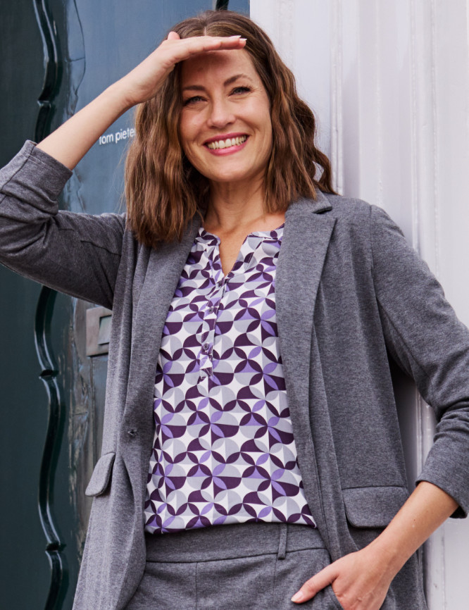 - Henley-Ausschnitt mit kurzer Knopfleiste