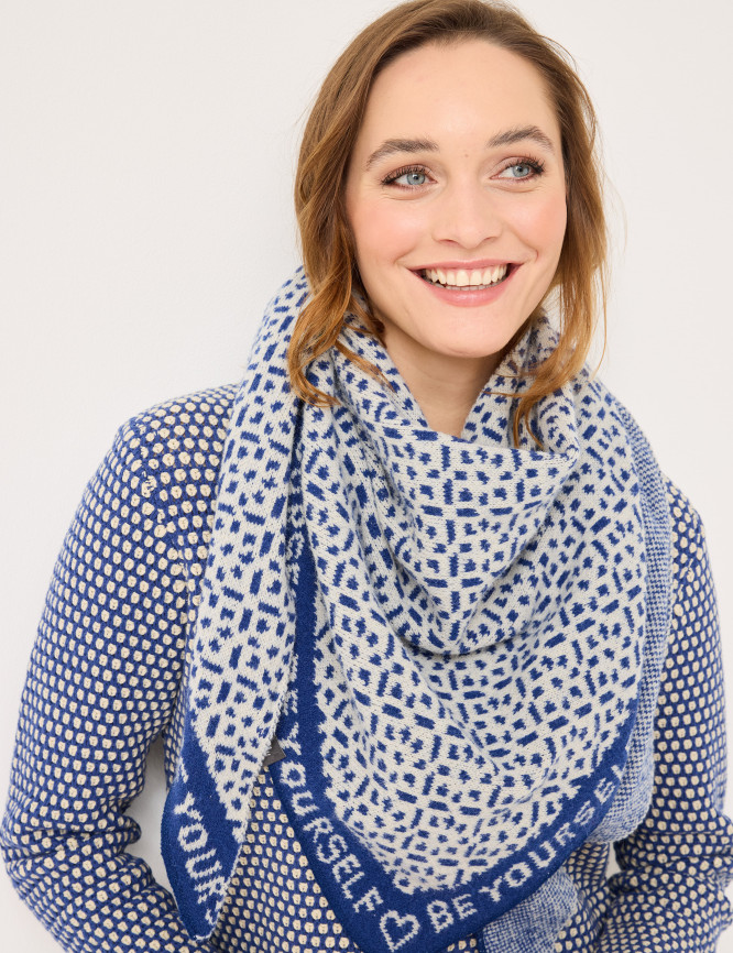 • Softer Dreieck-Schal mit modischem Jacquardmuster und Wording-Kante