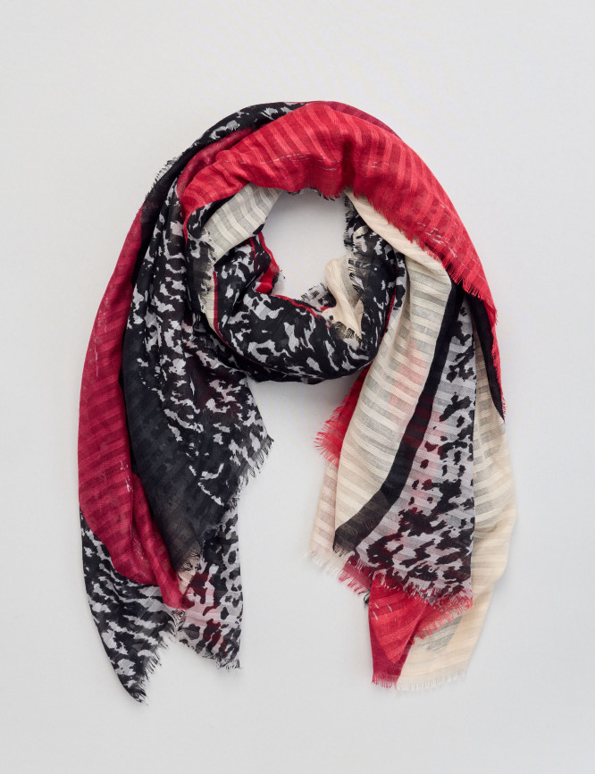 • Tuch mit modischen Web-Streifen und abstraktem Druck