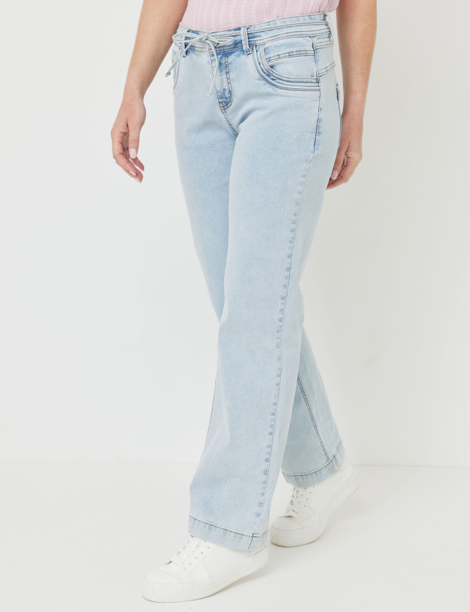 • Seitliche Eingriff- und Gesäßtaschen mit Ziernähten und Nieten